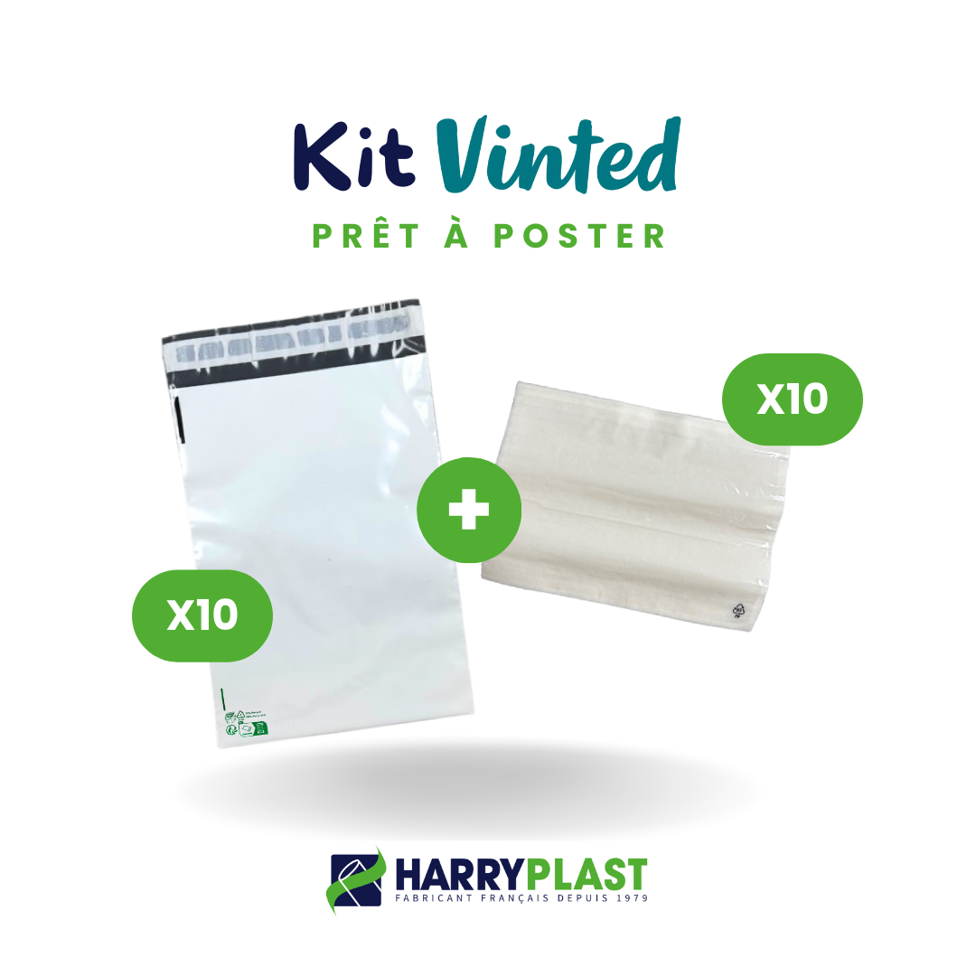 Kit colis Vinted – 10 enveloppes plastique N°1 (170x230mm) + 10 pochettes porte-documents