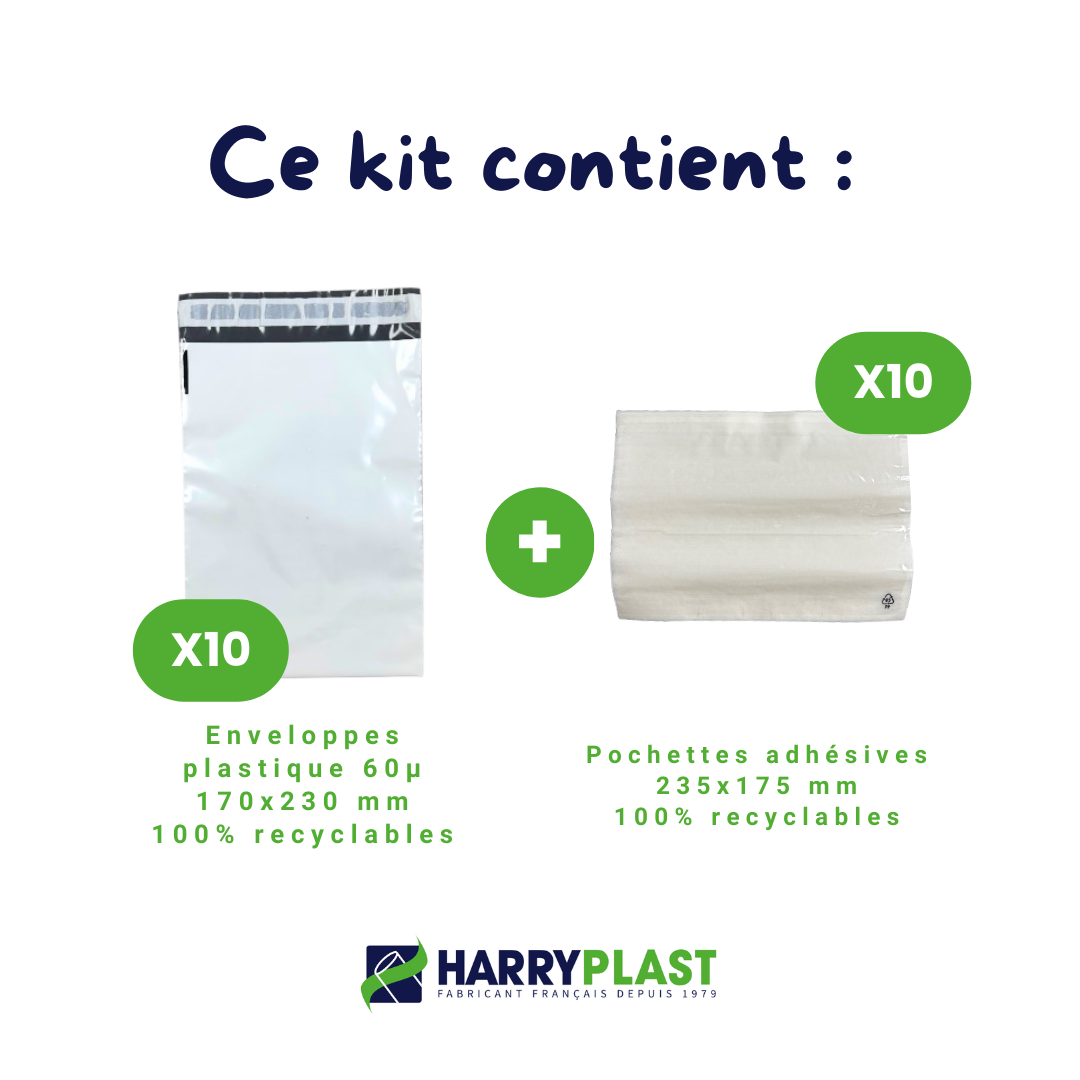 Parfait pour vos expéditions, ventes, retours et envois. Ce kit complet inclut 10 enveloppes d’expédition robustes et 10 pochettes autocollantes pratiques pour insérer vos bordereaux d’expédition (format A4 plié en deux). La solution idéale pour simplifier et sécuriser vos transactions en ligne !