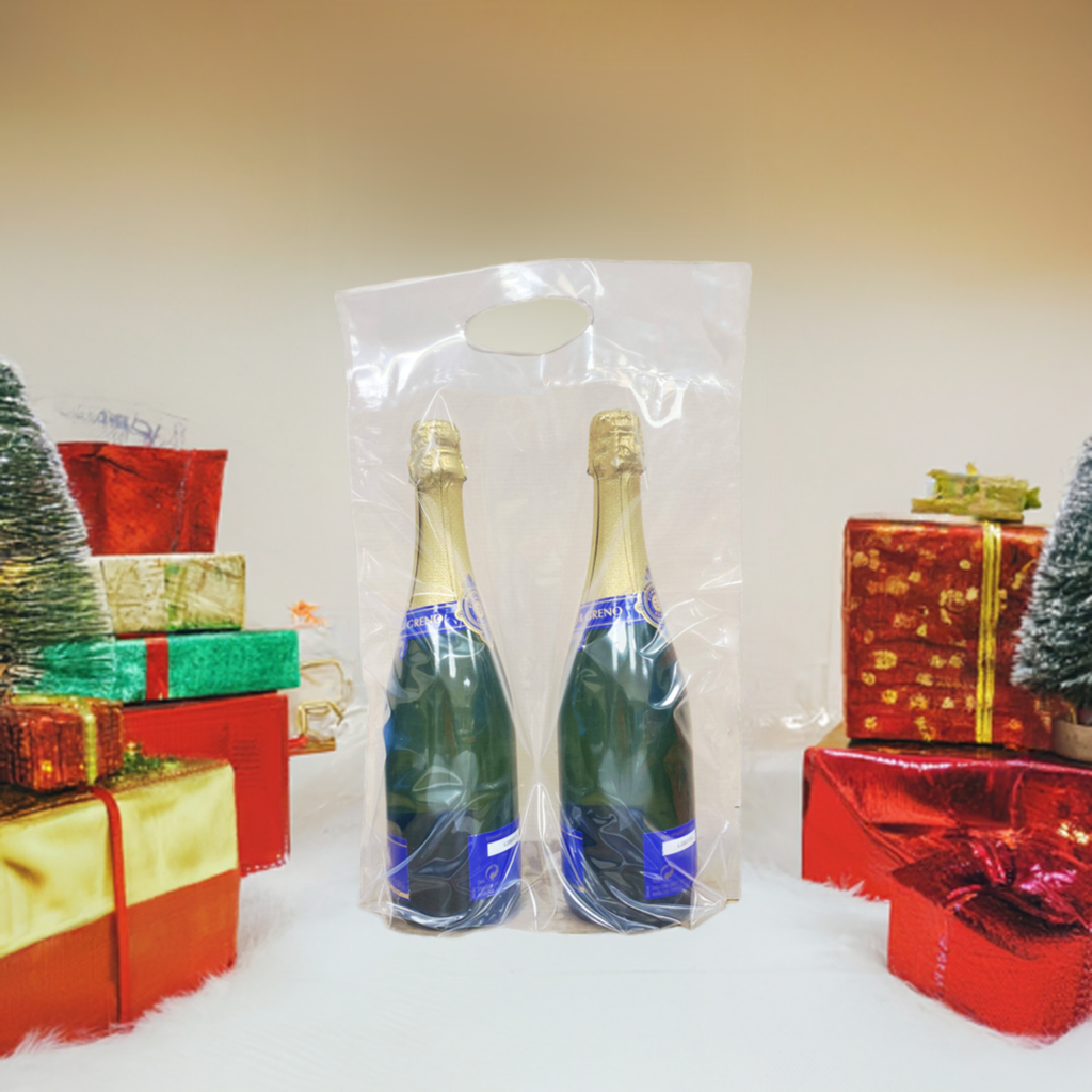 Transportez facilement vos bouteilles grâce à ce sac en plastique doté d’une poignée découpée pratique. Parfait pour le champagne, vin, whisky, apéritifs, digestifs, cidres, bières, limonades, sirops, jus ou encore huiles d’olive, il offre une solution idéale pour protéger et présenter vos produits.